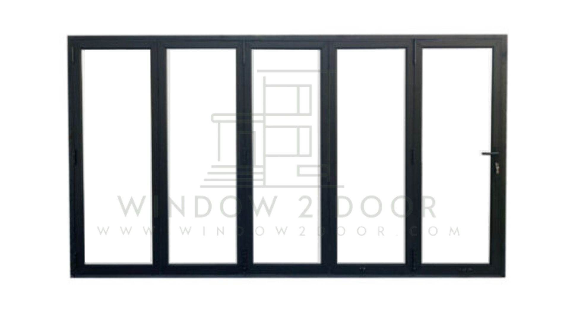 - Aluminum Bifold Doors blend sophistication and practicality, spanning 240 x 96 inches. They feature 5mm Low-E glass (outside) and 5mm clear (inside) with double tempered glass filled with 27 Argon gas for optimal insulation. The doors are fitted with premium LMSA German hardware, constructed from 2.0mm thick aluminum with a sleek powder coating in your choice of white or black. Enjoy seamless operation, heightened energy efficiency, easy installation, and enhanced security. Transform your space with these doors, marrying top-quality craftsmanship with modern design for an exceptional upgrade whether its your home or commercial space.