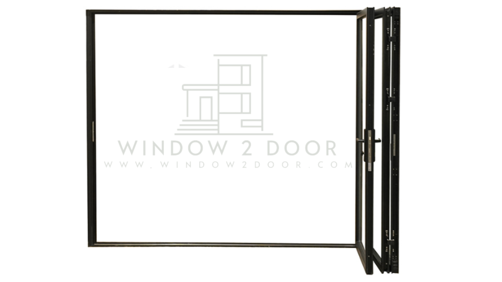 - Aluminum Bifold Doors blend sophistication and practicality, spanning 96 x 80 inches. They feature 5mm Low-E glass (outside) and 5mm clear (inside) with double tempered glass filled with 27 Argon gas for optimal insulation. The doors are fitted with premium LMSA German hardware, constructed from 2.0mm thick aluminum with a sleek powder coating in your choice of white or black. Enjoy seamless operation, heightened energy efficiency, easy installation, and enhanced security. Transform your space with these doors, marrying top-quality craftsmanship with modern design for an exceptional upgrade whether its your home or commercial space.